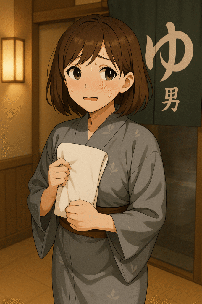 旅館の部屋で、浴衣姿のまま足を伸ばす。 温泉へ向かう廊下、肩が少し触れて胸が高鳴った。 「一緒に入ろうよ」と冗談めかして誘うと、彼女は頬を赤らめて目をそらした。
